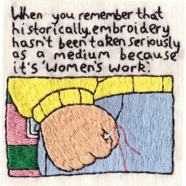 : Spent about 15 hours stitching this feminist art meme 😂